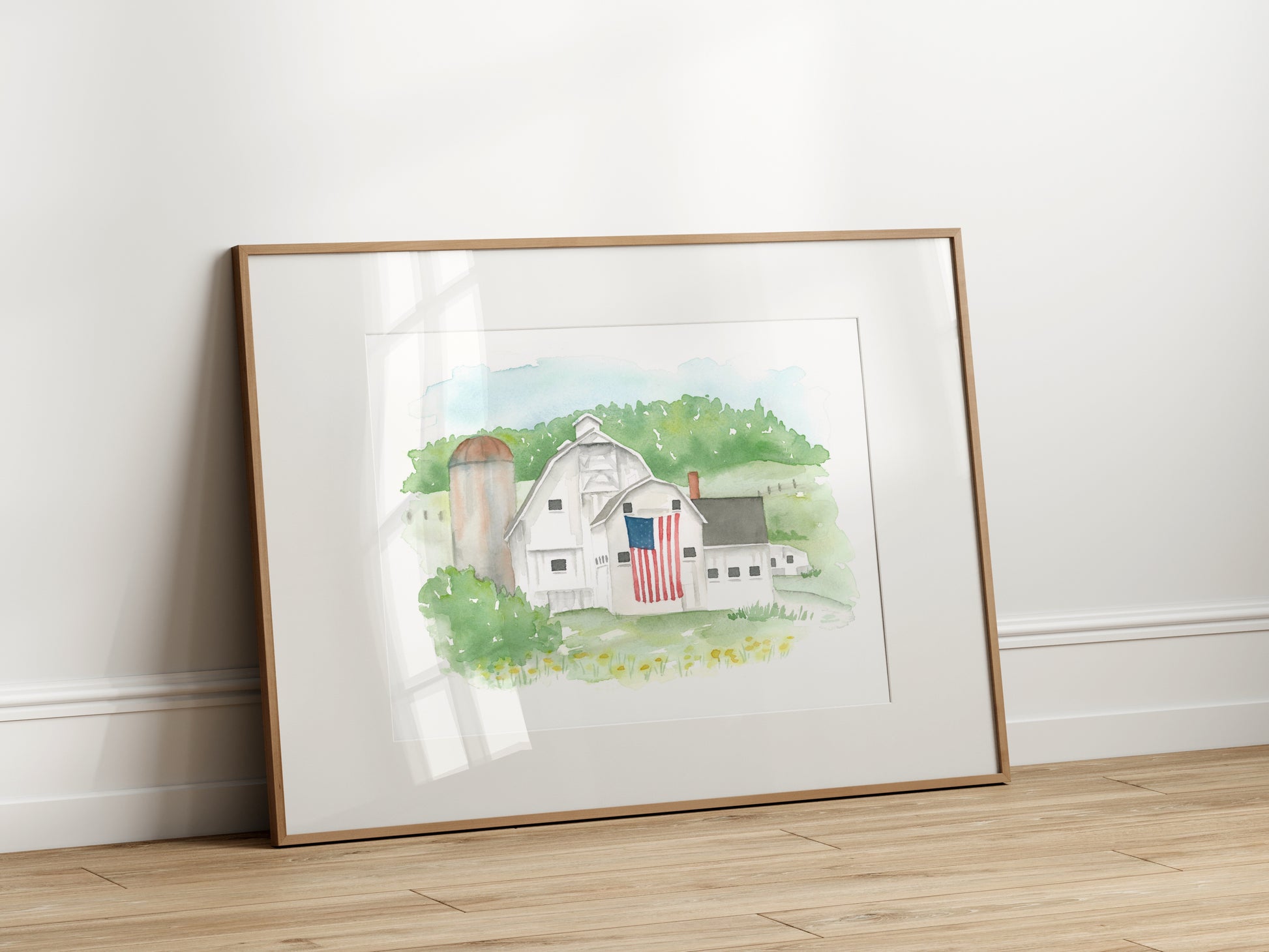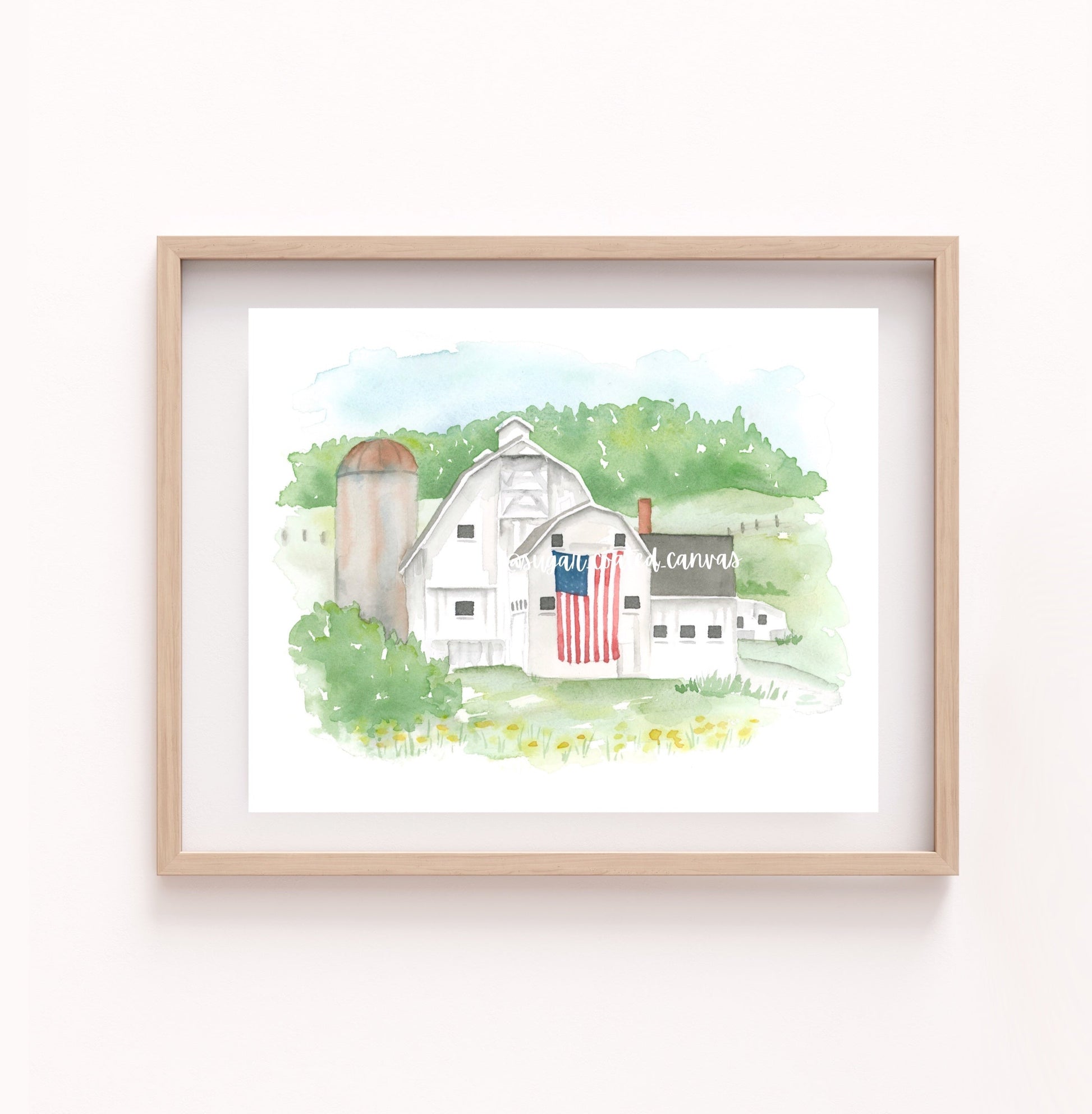 Brighten up your home decor with the charming USA Barn Watercolor Print. Featuring a beautiful watercolor painting of an American barn, this print captures the essence of a warm and sunny summer day. Perfect for adding a touch of Americana to any room in your home.