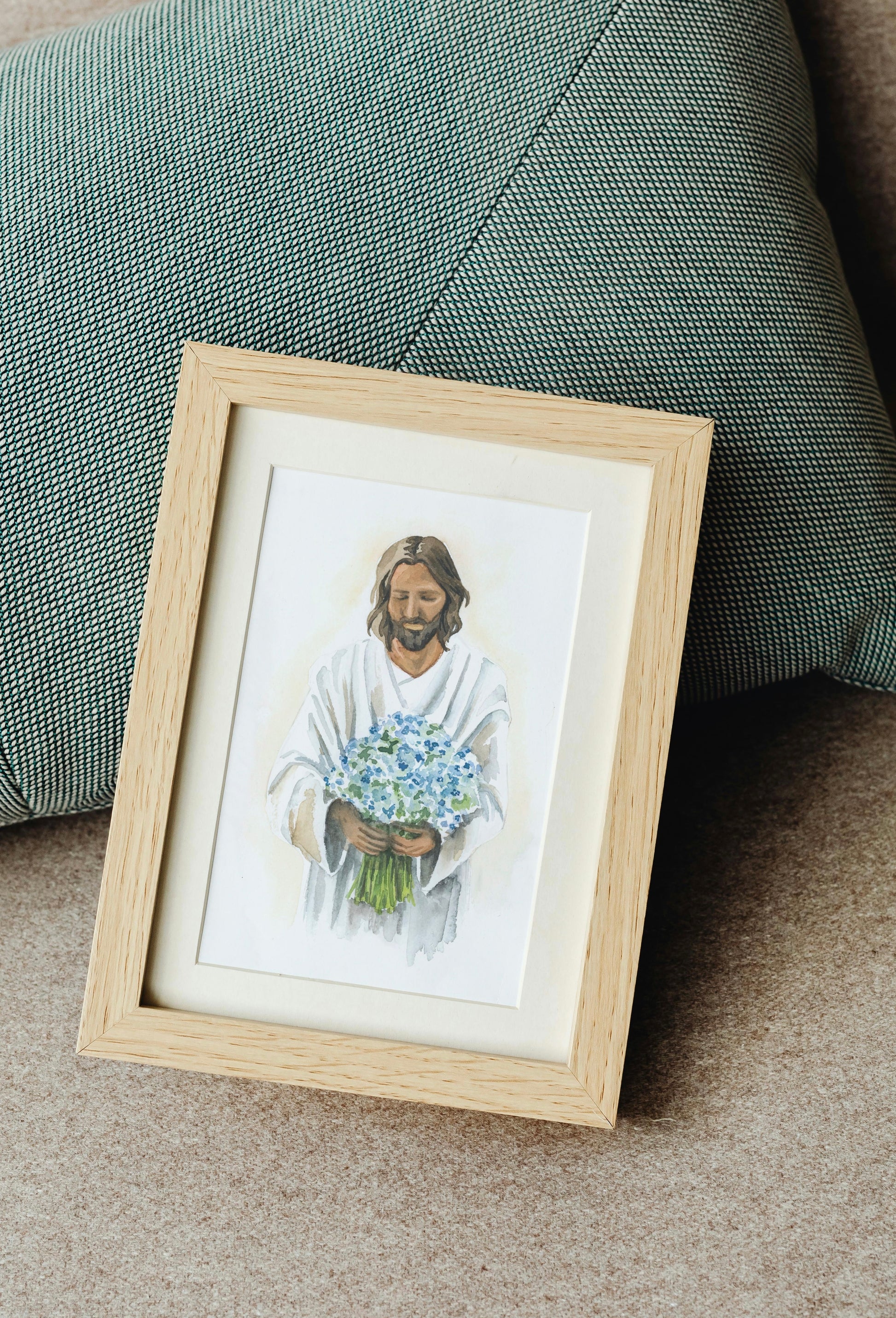 Bring a comforting reminder of faith into your home with our Forget Me Not Christian Watercolor Print. Featuring a beautiful watercolor painting of Christ holding forget me nots, this print serves as a gentle reminder that we are never forgotten. Perfect for any room, this print brings a sense of peace and reassurance.