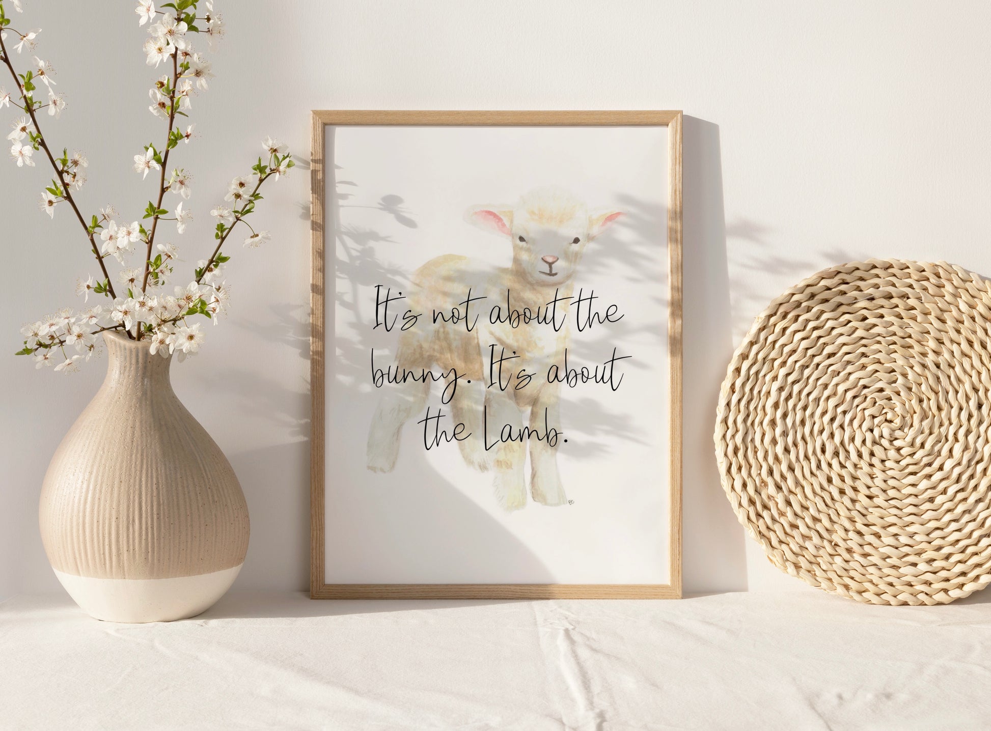 Celebrate the true meaning of Easter with our Lamb Easter Print. This Christian artwork captures the essence of the holiday, reminding us that it's not about the bunny, but about the lamb. Perfect for displaying in your home or giving as a gift, this print is a beautiful reminder of the true reason for the season.