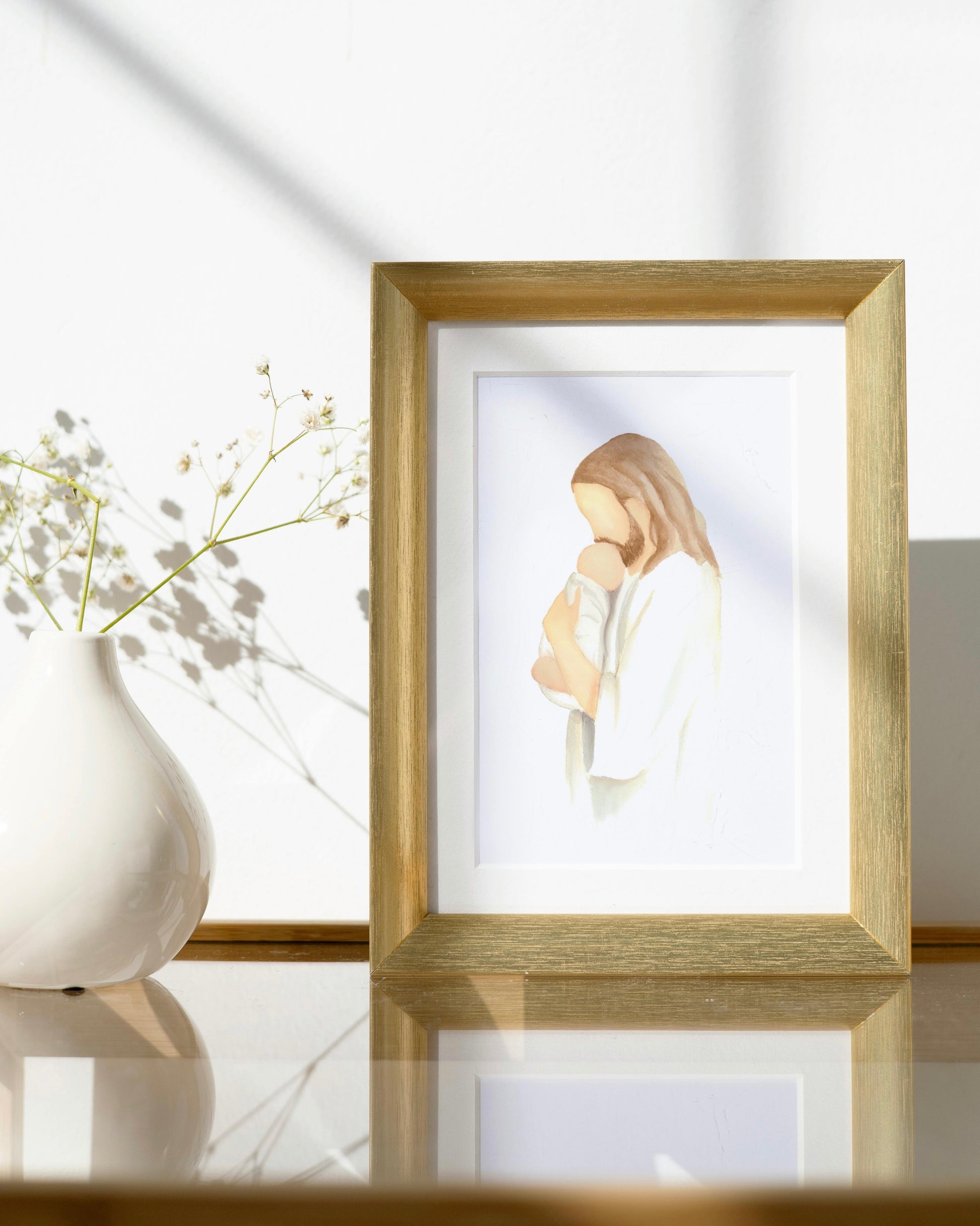 Experience comfort and simplicity in this Jesus Holding Baby Miscarriage Print. Let Jesus' loving embrace bring solace and healing during a difficult time. A beautiful and supportive reminder of His unconditional love for you.