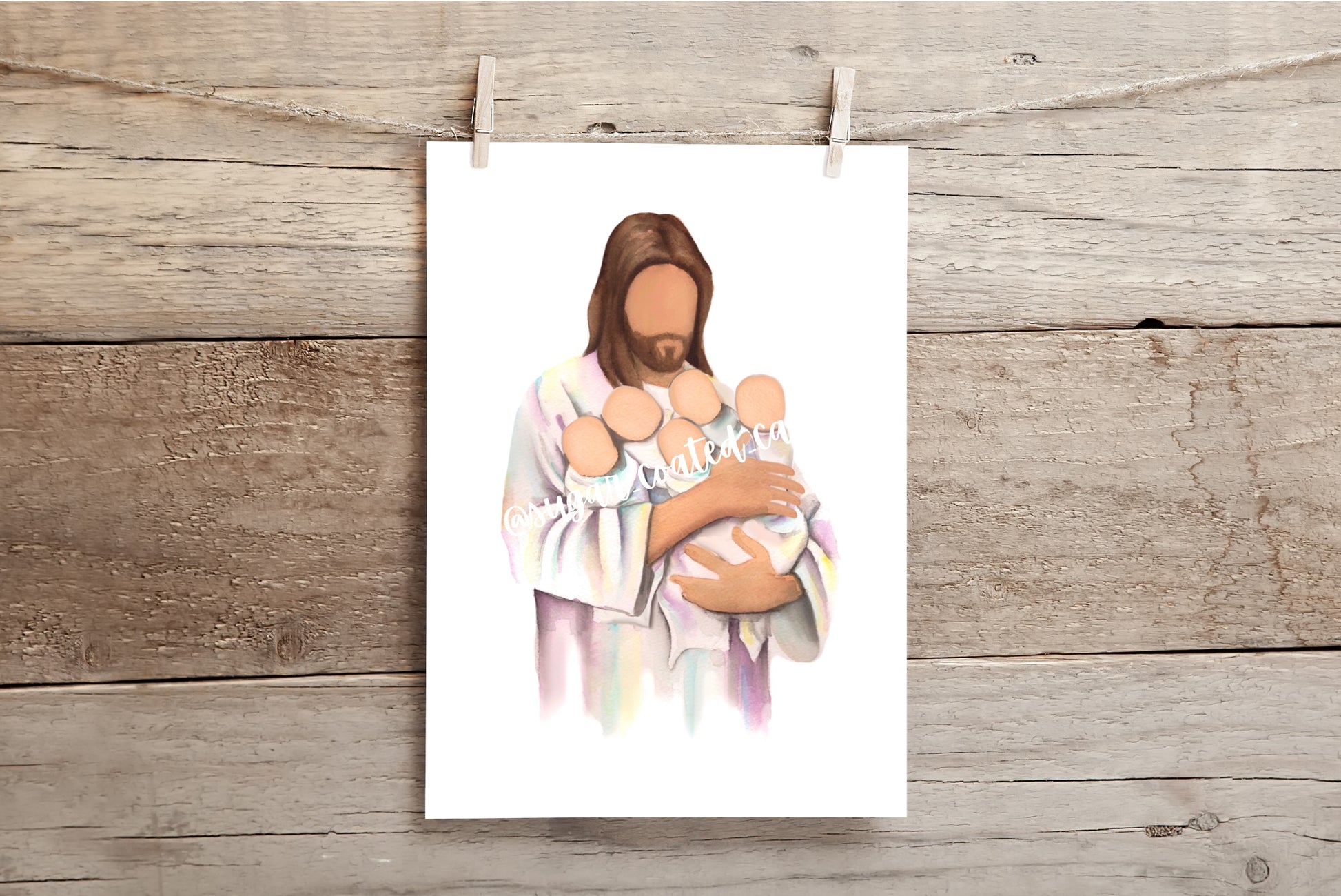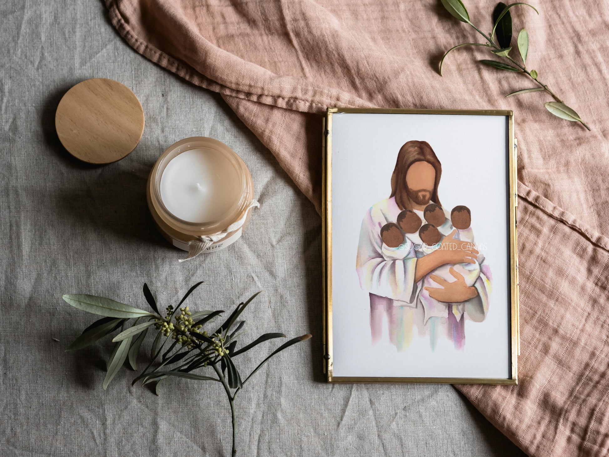 Need a comforting gift for someone who has experienced a miscarriage or wants to honor their angel babies? Look no further than our beautiful watercolor print of Jesus holding five babies. This touching piece of art is a reminder of love and comfort, and a way to hold on to precious memories.