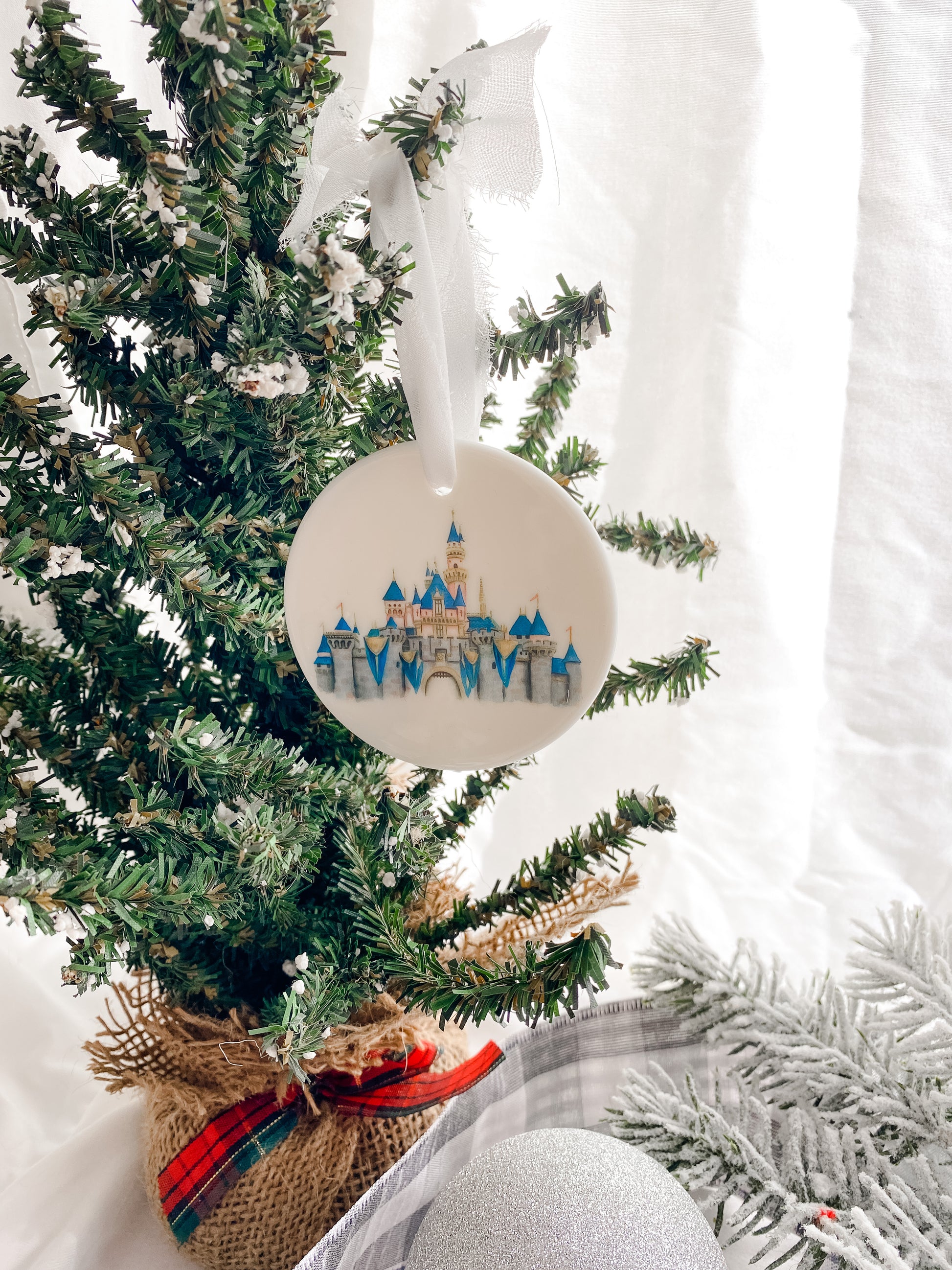 Transform your home into a magical kingdom with our Theme Park Castle Ornament! Featuring iconic castles from Disneyland and Cinderella's story, this ornament will transport you to your own fairytale adventure. Perfect for commemorating a special trip or adding a touch of enchantment to your home.