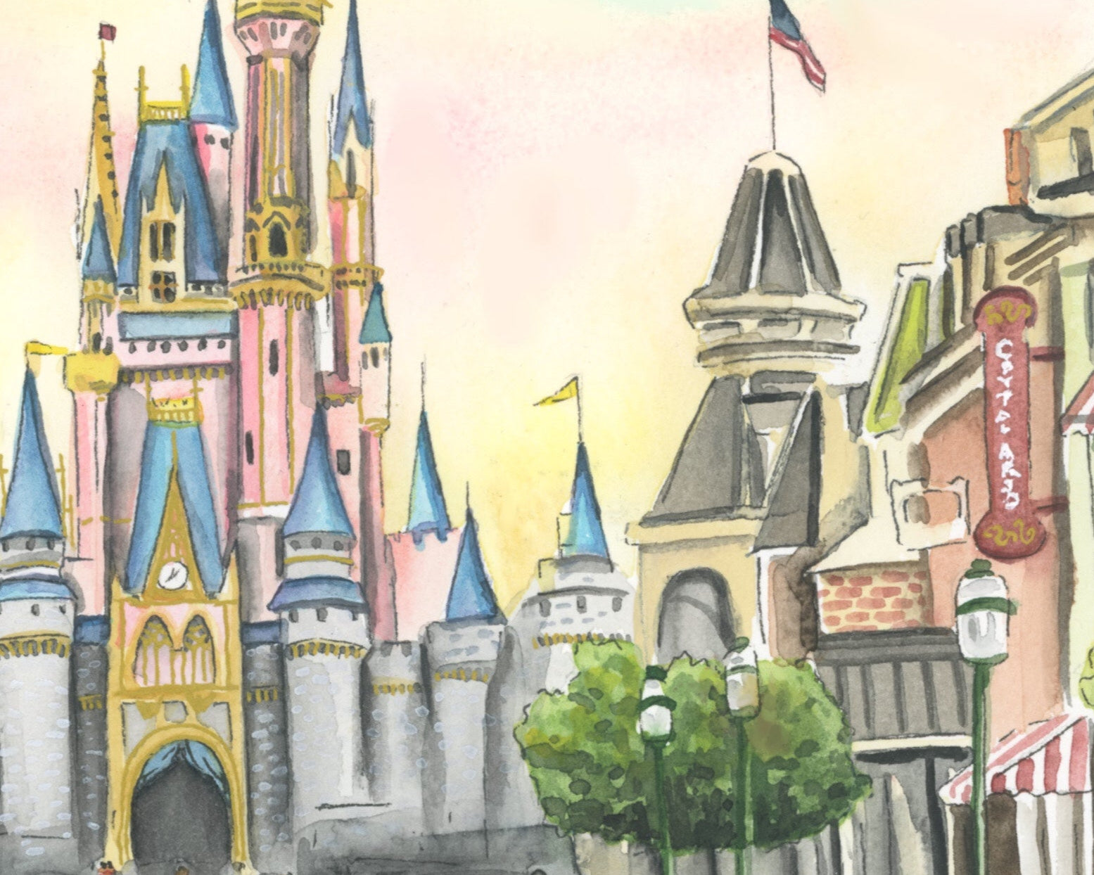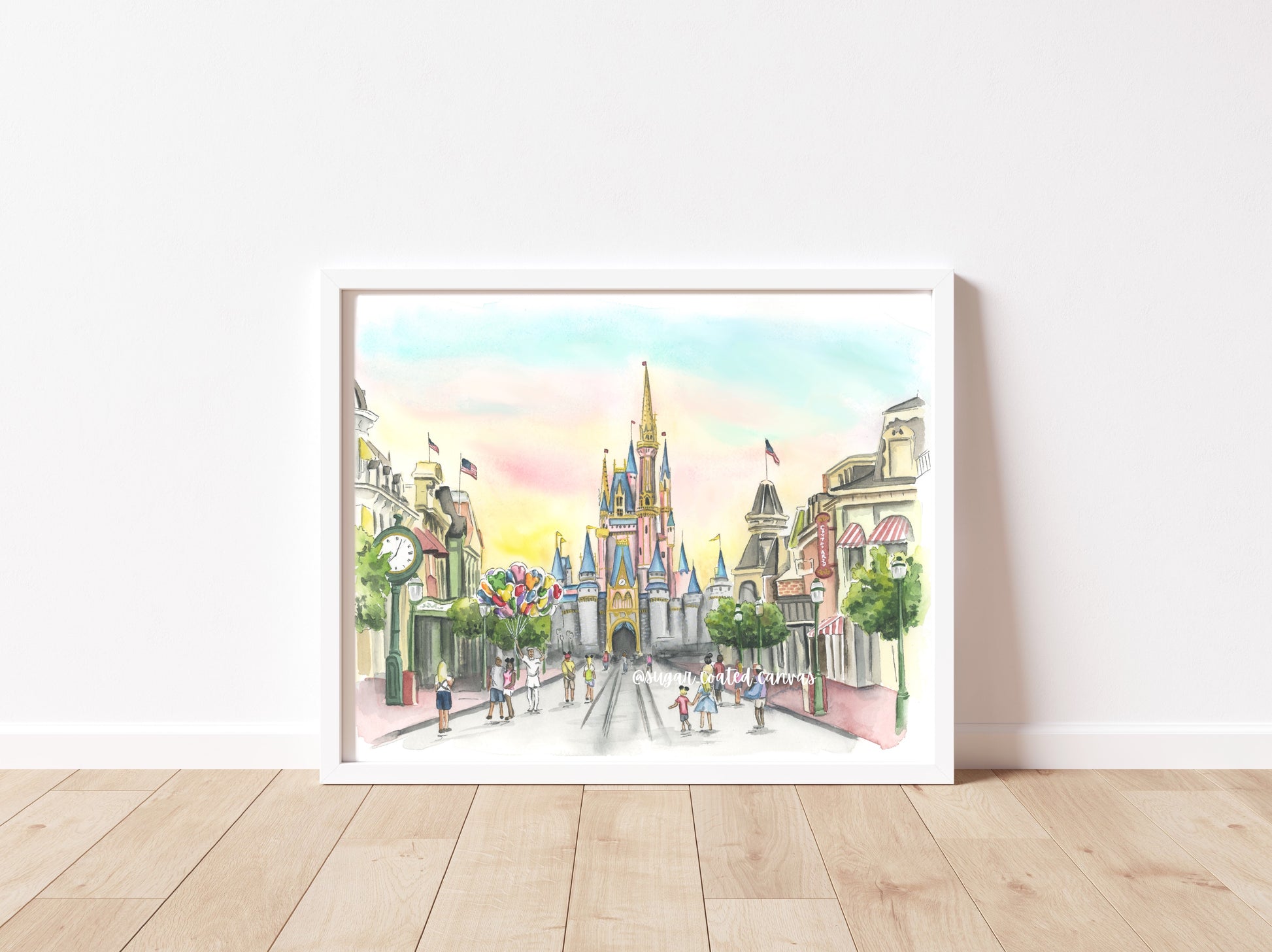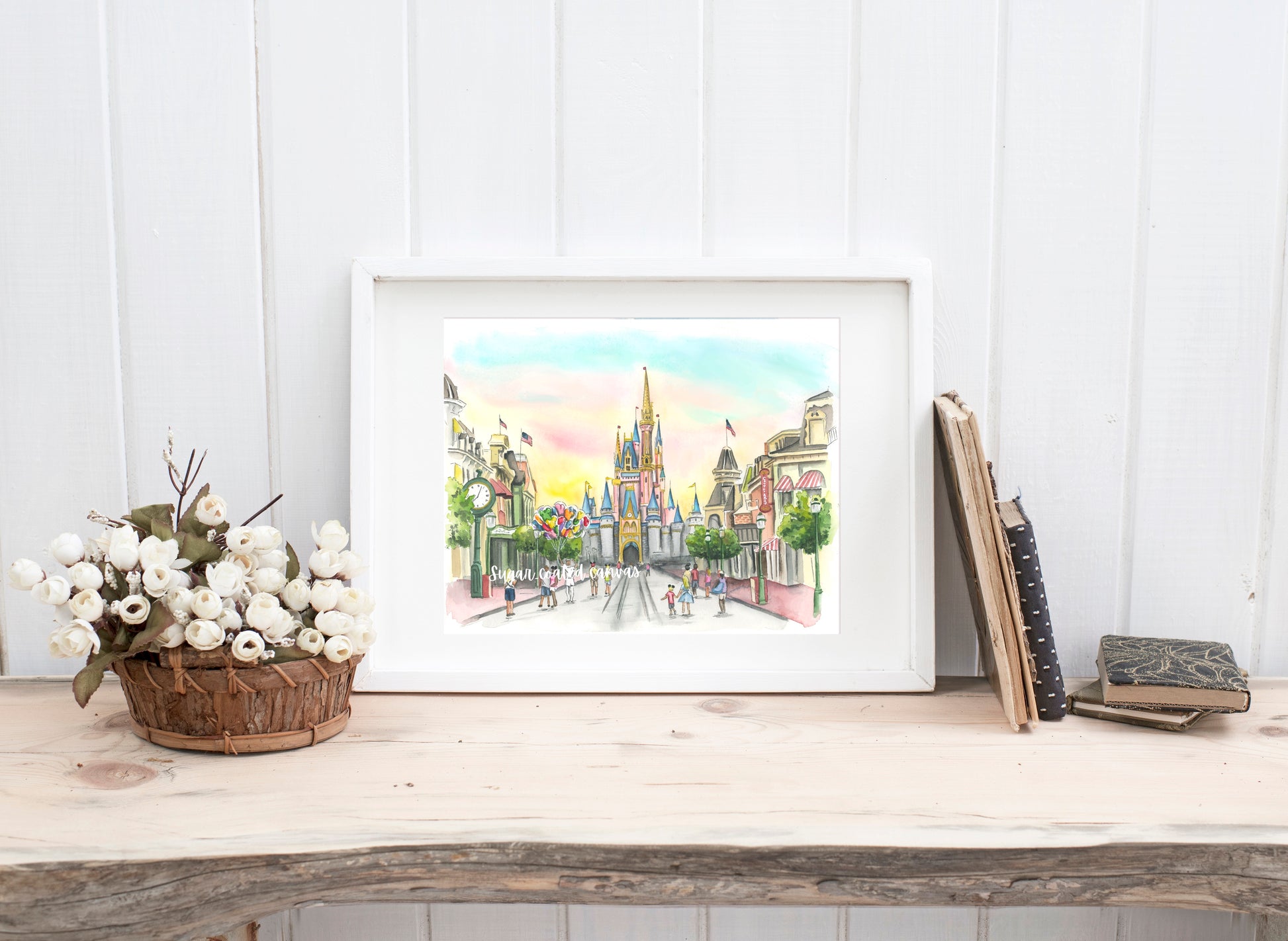 This beautiful watercolor print captures the essence and charm of main street. With its realistic depiction and vibrant colors, it will add a touch of warmth and nostalgia to any room. Experience the beauty of your favorite place from the comfort of your own home with this Main Street watercolor print. This is a print of hand painted artwork by Emily Colledge.