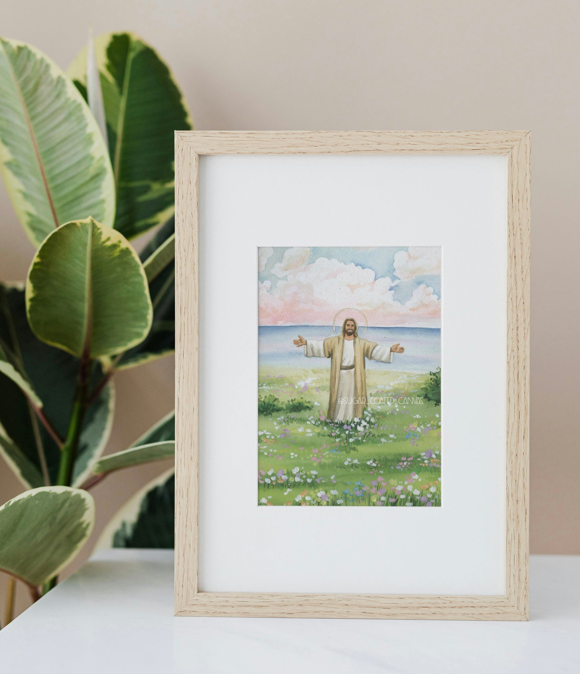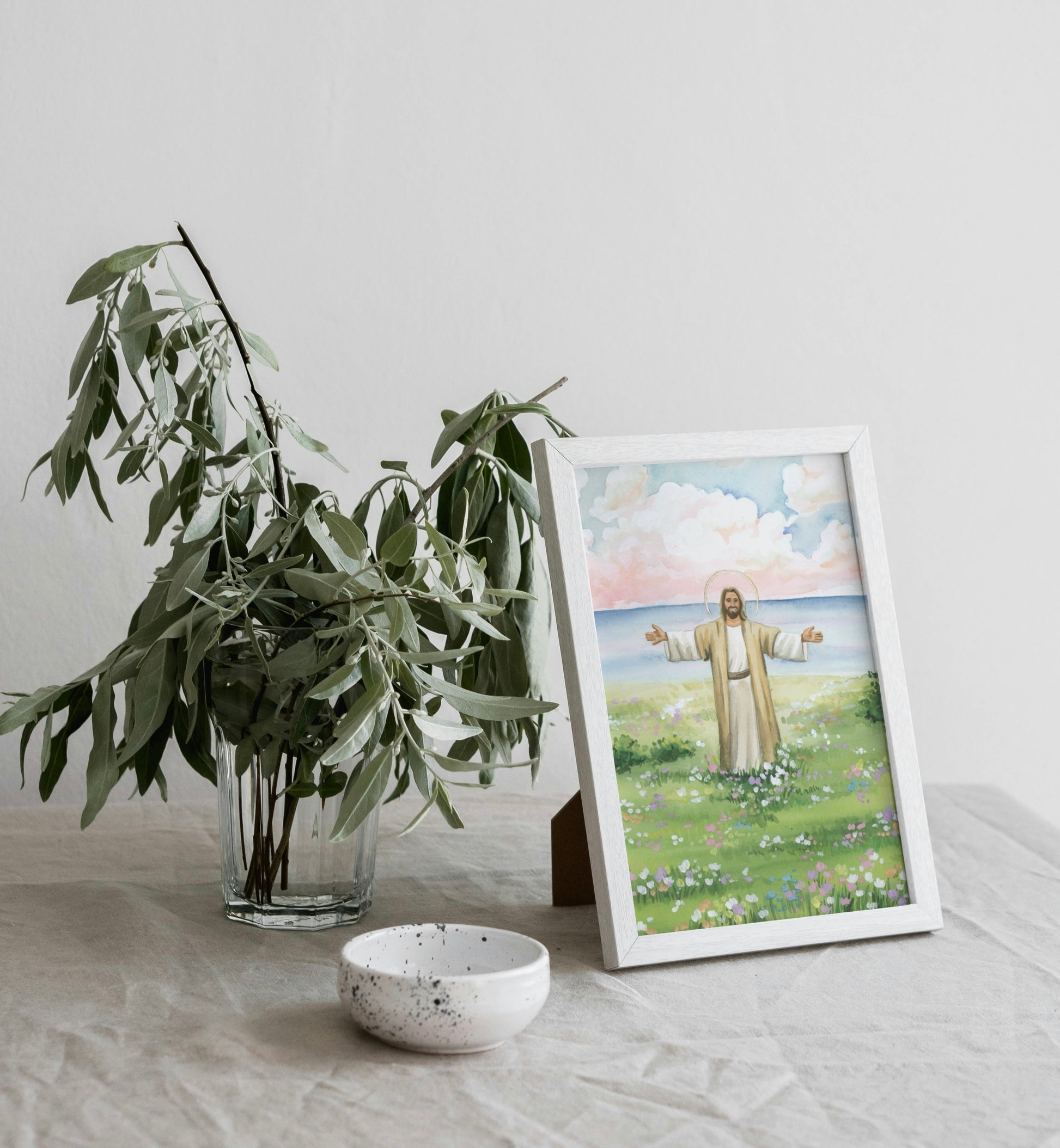 Discover genuine happiness with the presence of Jesus Christ by your side. This vibrant and cheerful display serves as a daily reminder to seek true joy in life through faith. Allow Jesus to bring joy to your life with this print.