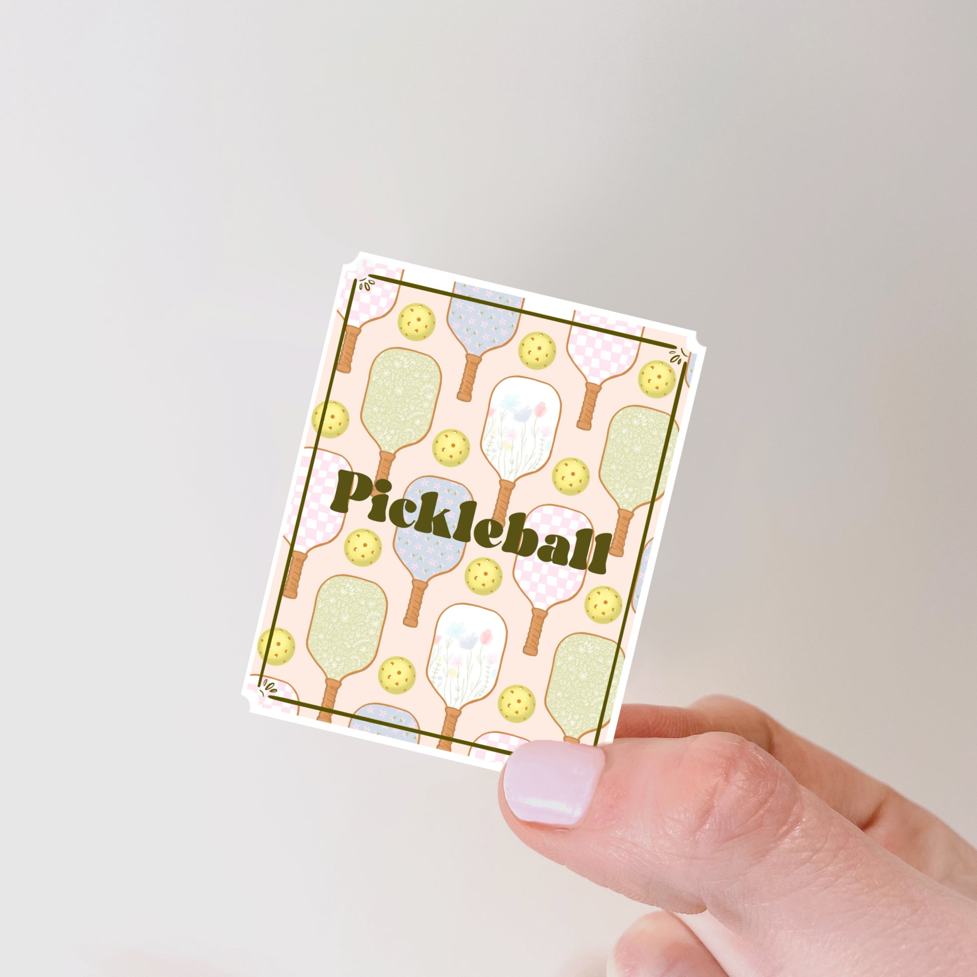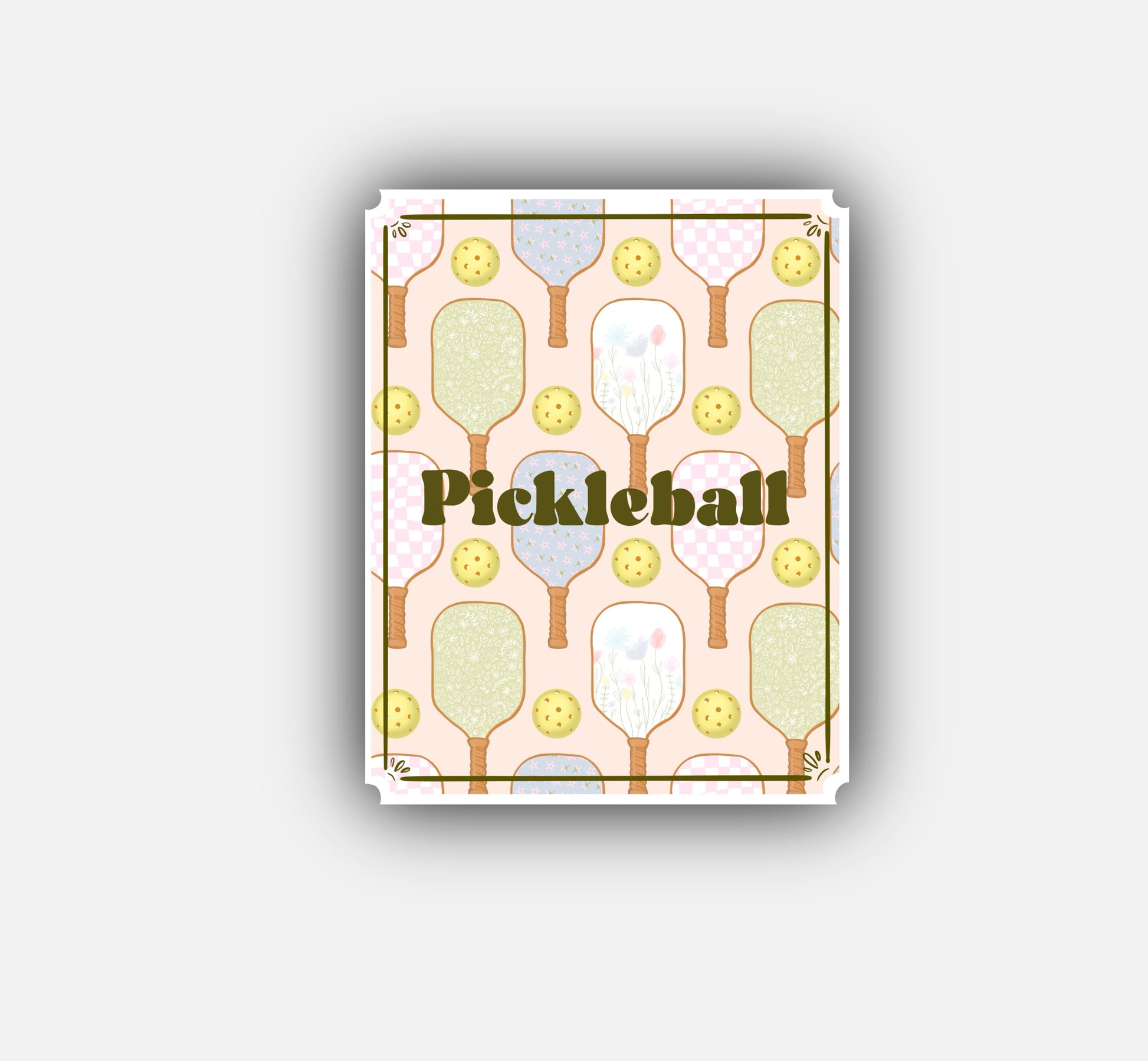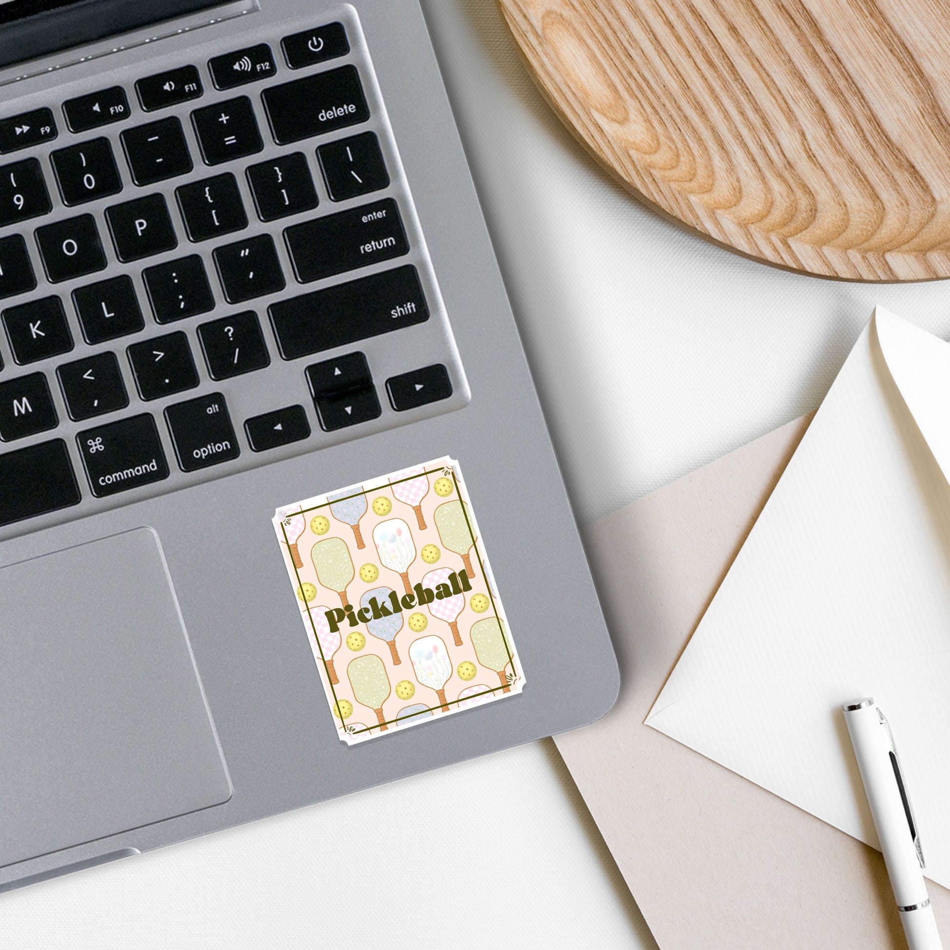 Add some zest to your gear with this adorable pickleball sticker. Made with waterproof vinyl and a dink-worthy pattern, it's a must-have for any pickleball lover. Show off your love for the game in a fun and stylish way!