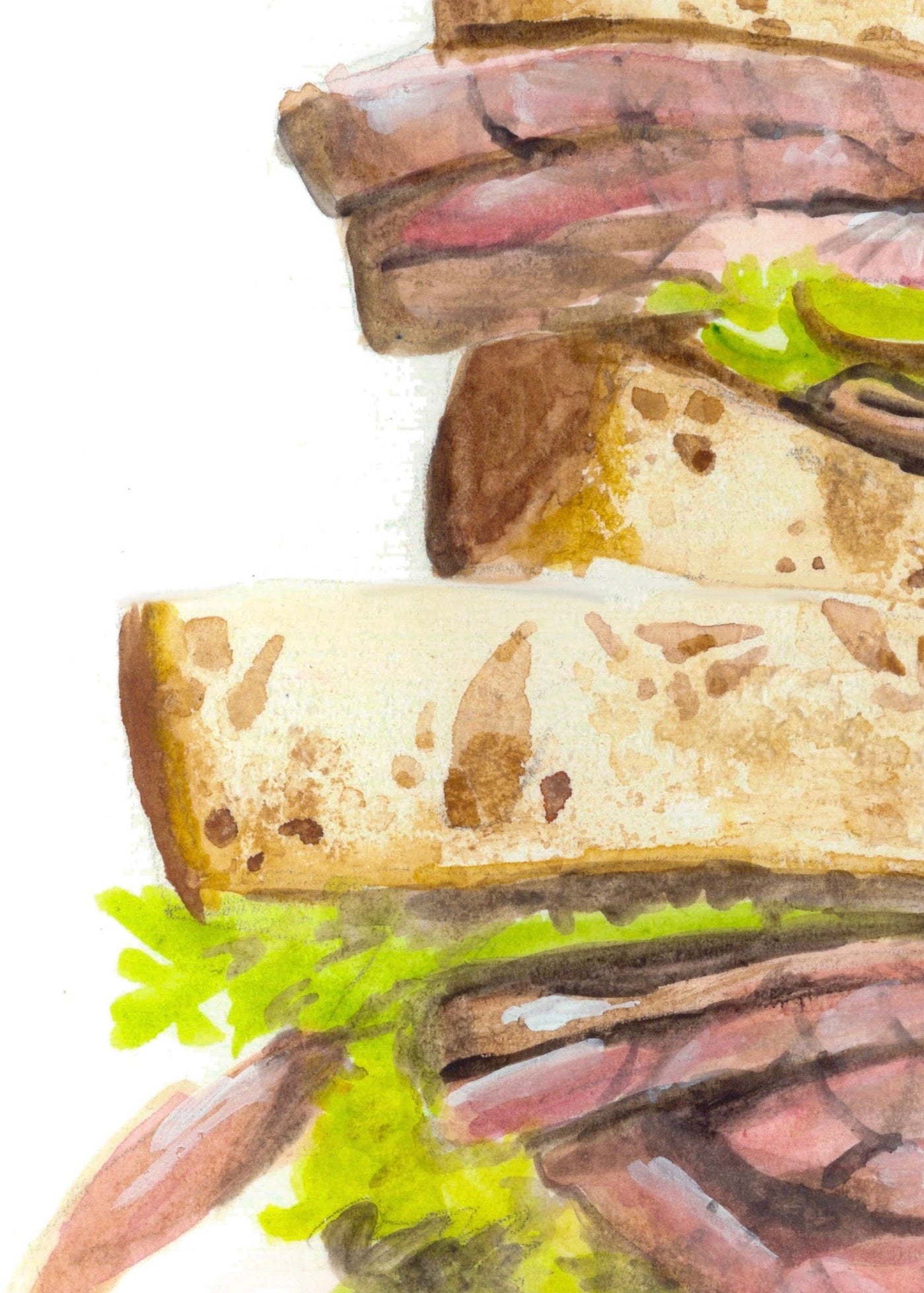 Bring a dash of whimsy to your walls with this charming sandwich watercolor print. The soft, artistic rendering of everyone's favorite lunchtime classic creates a warm, inviting atmosphere in any kitchen. Food lovers will appreciate this delightful conversation piece that celebrates culinary joy in a uniquely artistic way.