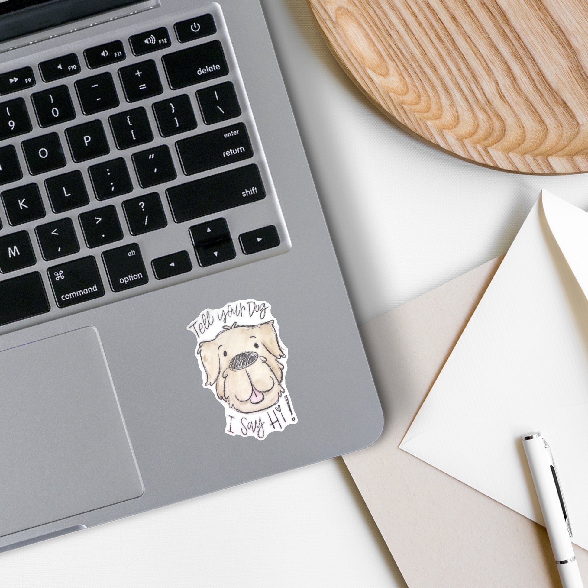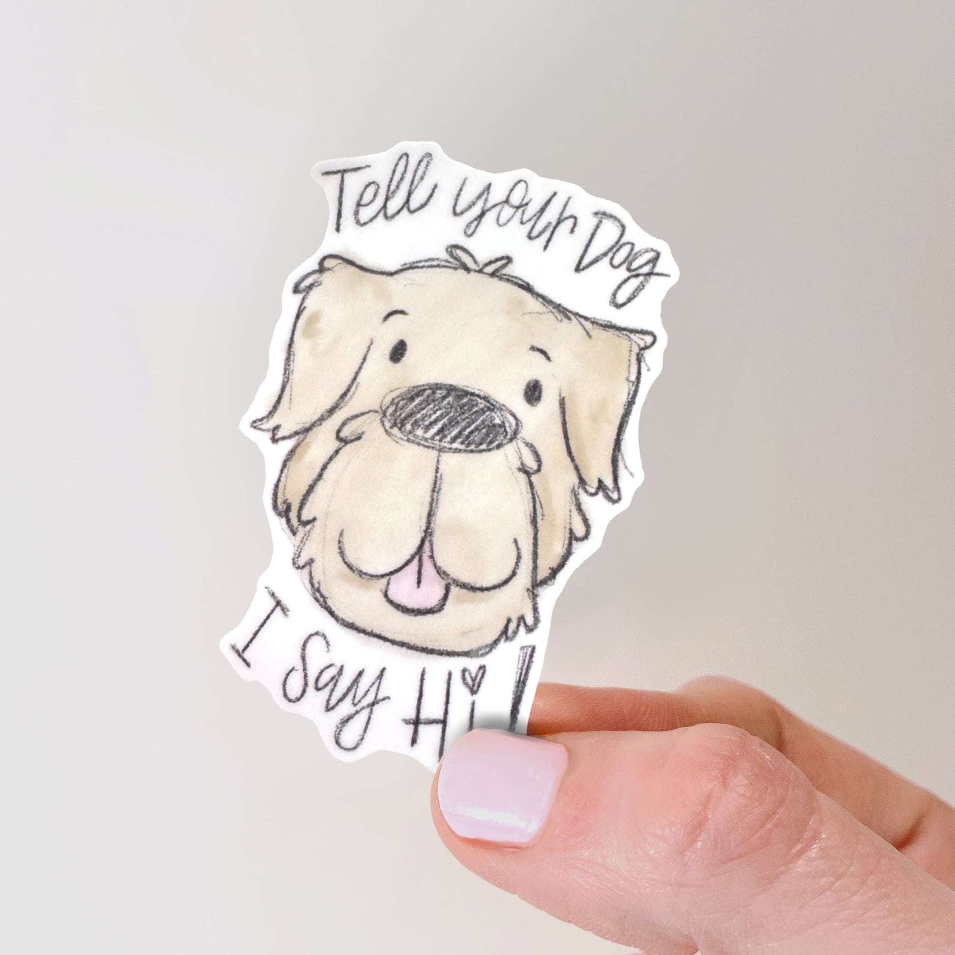 Let your love for dogs show with our "Tell Your Dog I Say Hi" vinyl sticker. Perfect for any dog lover, this cute sticker will add a personal touch to any car, laptop, or water bottle. This sticker is made of high-quality vinyl that is waterproof and durable. This Sticker is approximately 2x3 inches.