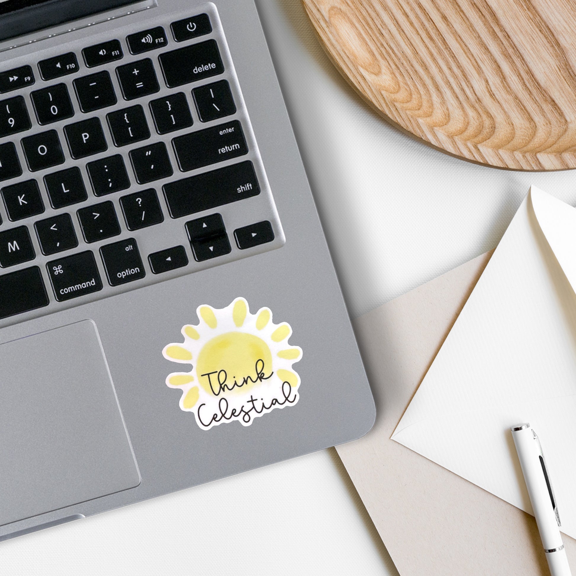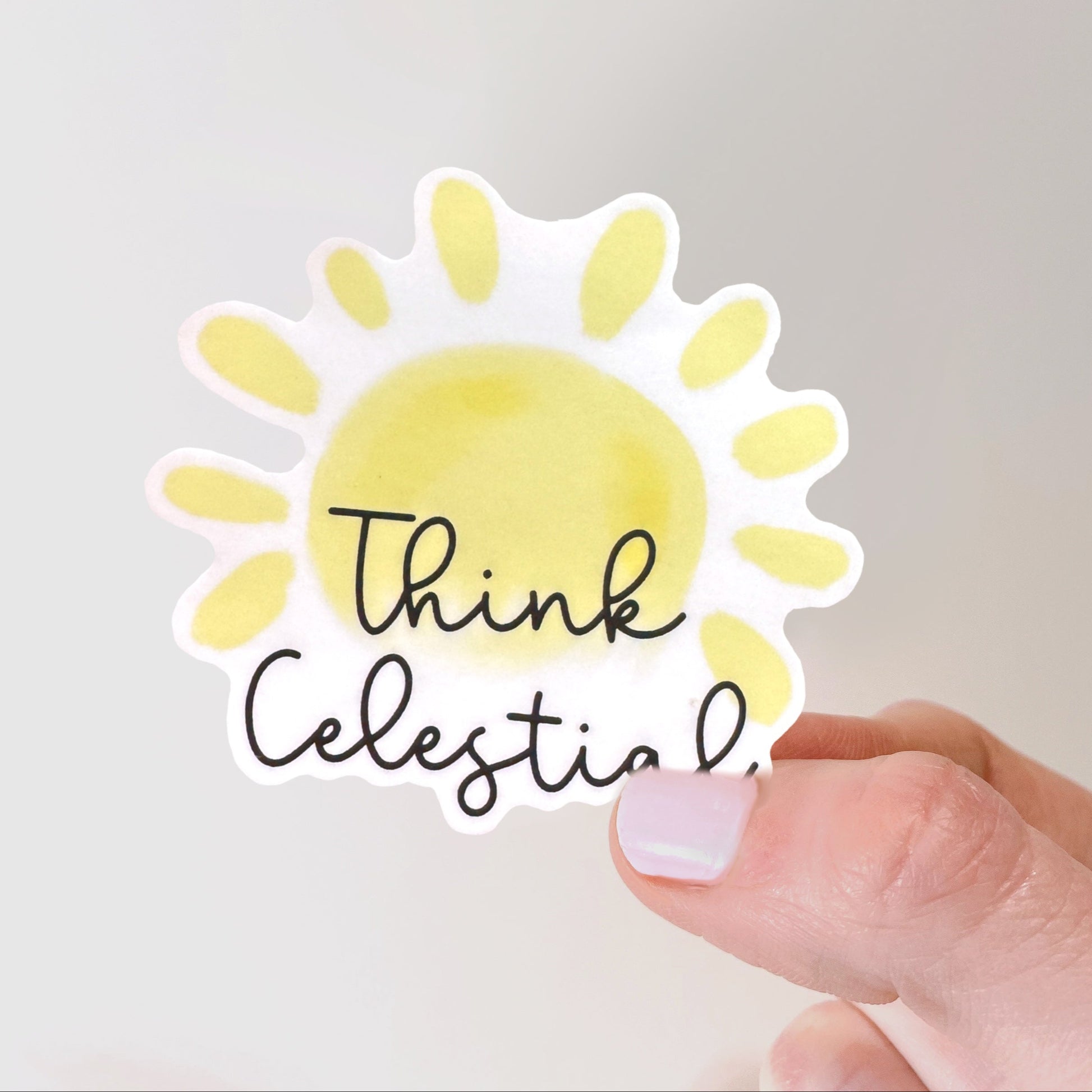 This beautiful Think Celestial Vinyl Sticker features a powerful quote from President Nelson that will inspire and uplift you every time you see it. Perfect for adding a touch of inspiration to your laptop, water bottle or journal. Stay motivated and think celestial with this sticker. This Vinyl Sticker is waterproof and made of high quality vinyl