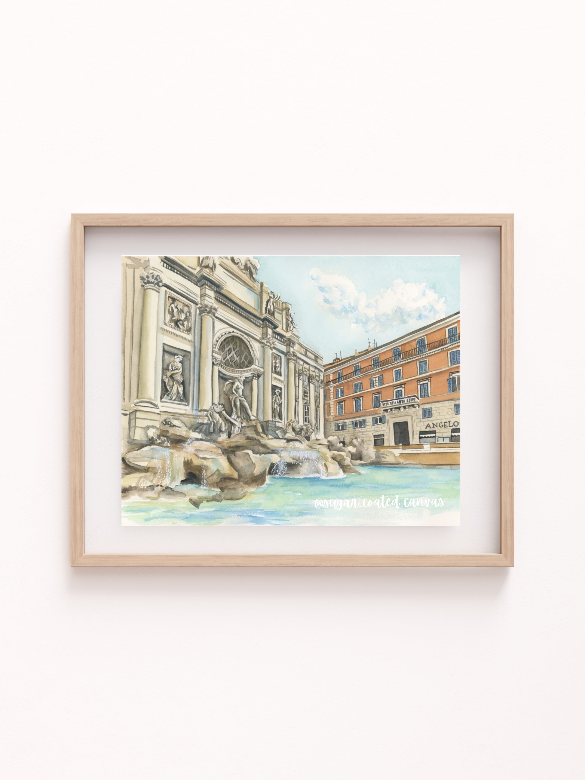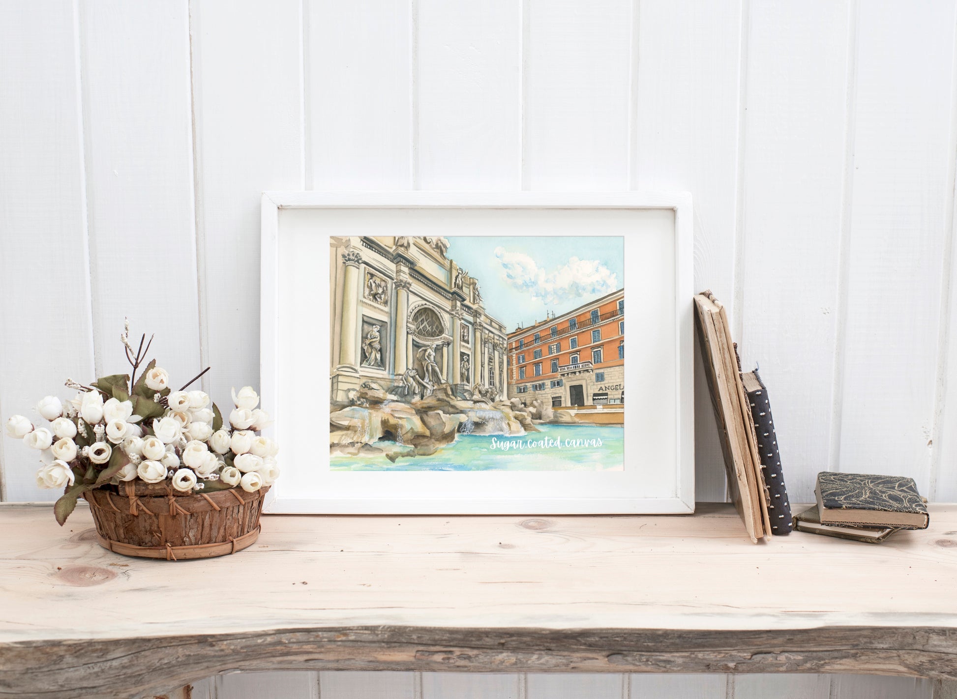 Immerse yourself in the beauty of Rome with this watercolor painting of the Trevi Fountain. Hang it in your home or office for a daily dose of Italian charm. The perfect gift for art lovers or those with wanderlust!